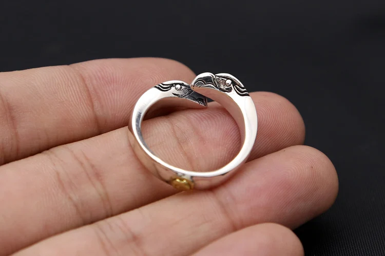 Best 8.4g Solid 925 Sterling Silver Double Eagle Desgin Cuff Ring Men Vintage Indian Style Handmade Desi