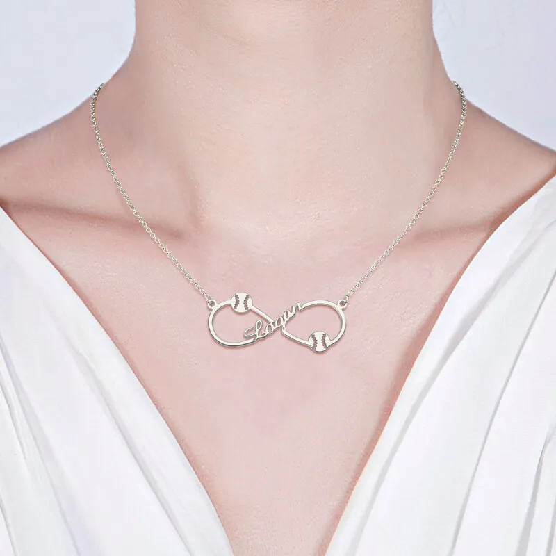 Best Seller Wholesale Personalized Infinity Baseball Name Necklace Sterling Silver Baseball Pendant Fashion Jew