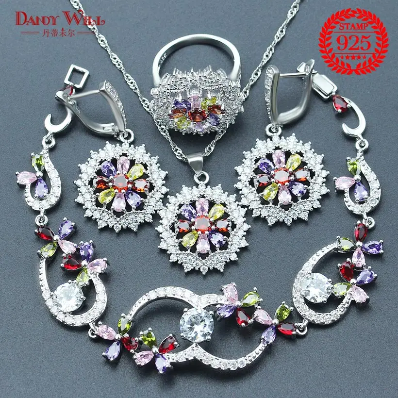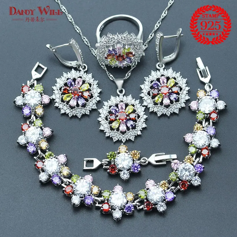 TOP 925 Sterling Silver Bridal Jewelry Sets For Women Light Cubic Zirconia Bracelets And Necklace Earri