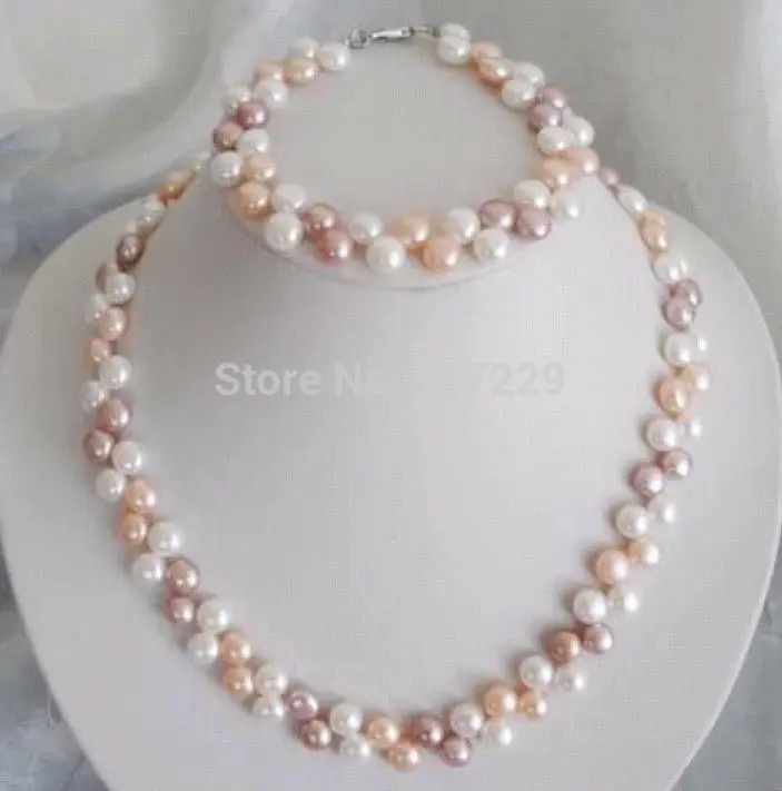 A0503 Wholesale price Fast shipping + ^^^7-8mm White/Pink/Purple Akoya Cultured Pearl Necklace Brac