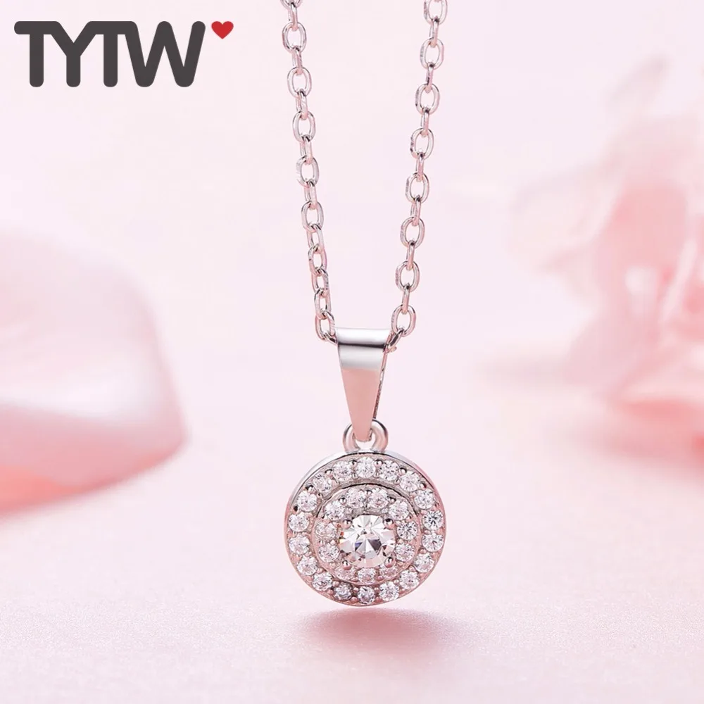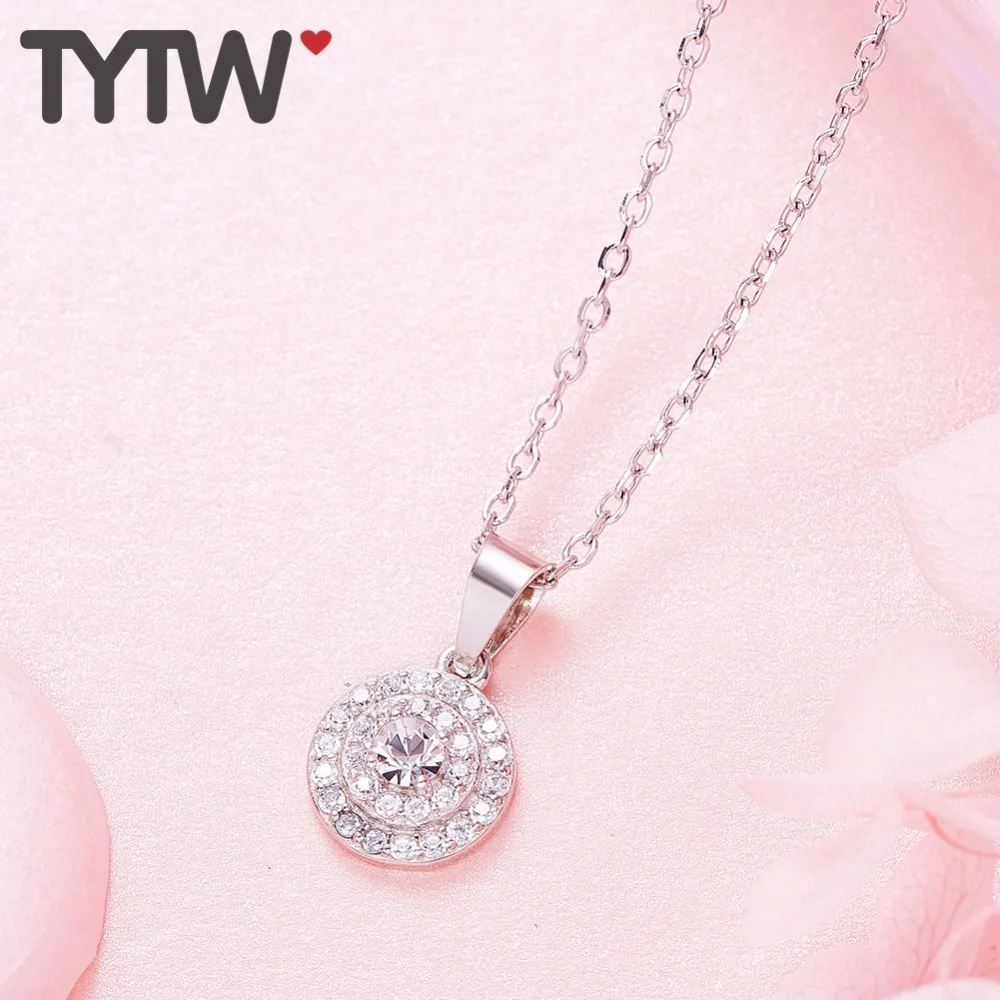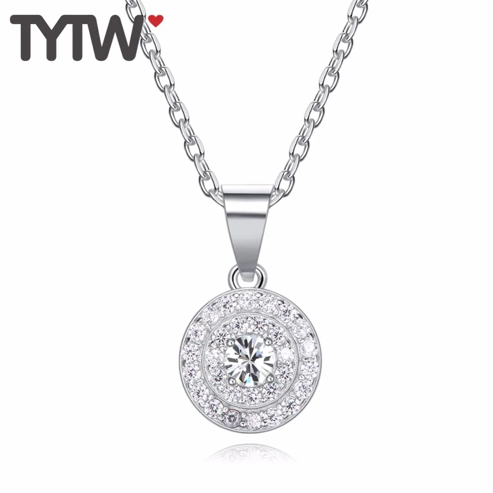 Hot Sale TYTW Crystals From Austrian S925 Sterling Silver women Round necklace pendant jewelry gift for lady