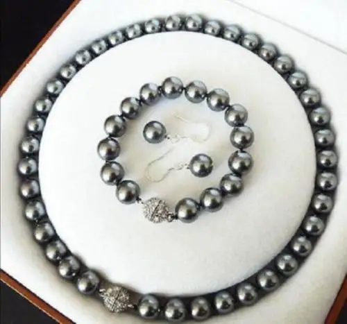 HOT Sale Free Shipping >>>>> AAA + 10MM dark gray South Sea Shell pearl necklace bracelet earring SET