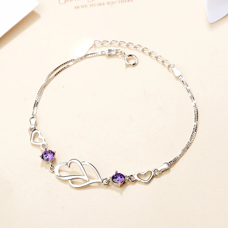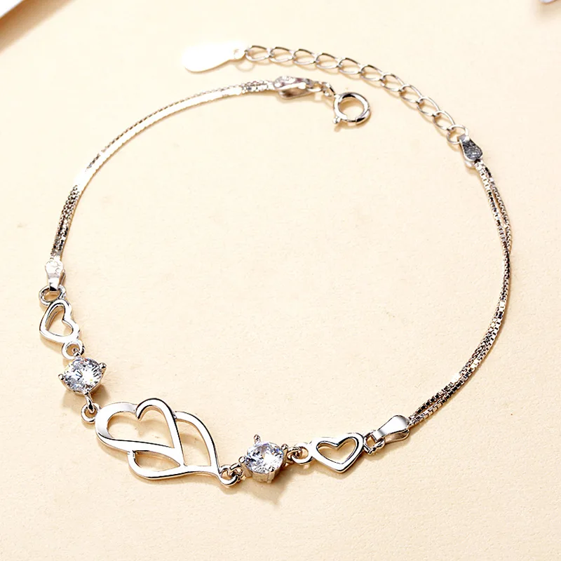 New Fashion Standard Sterling Silver Bracelet Female Heart Even Heart Jewelry Beautiful Gift Good P