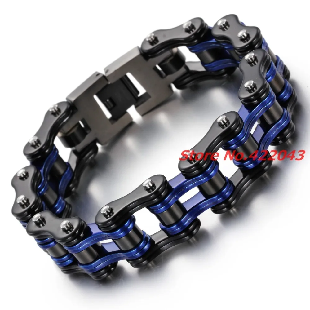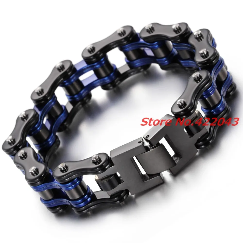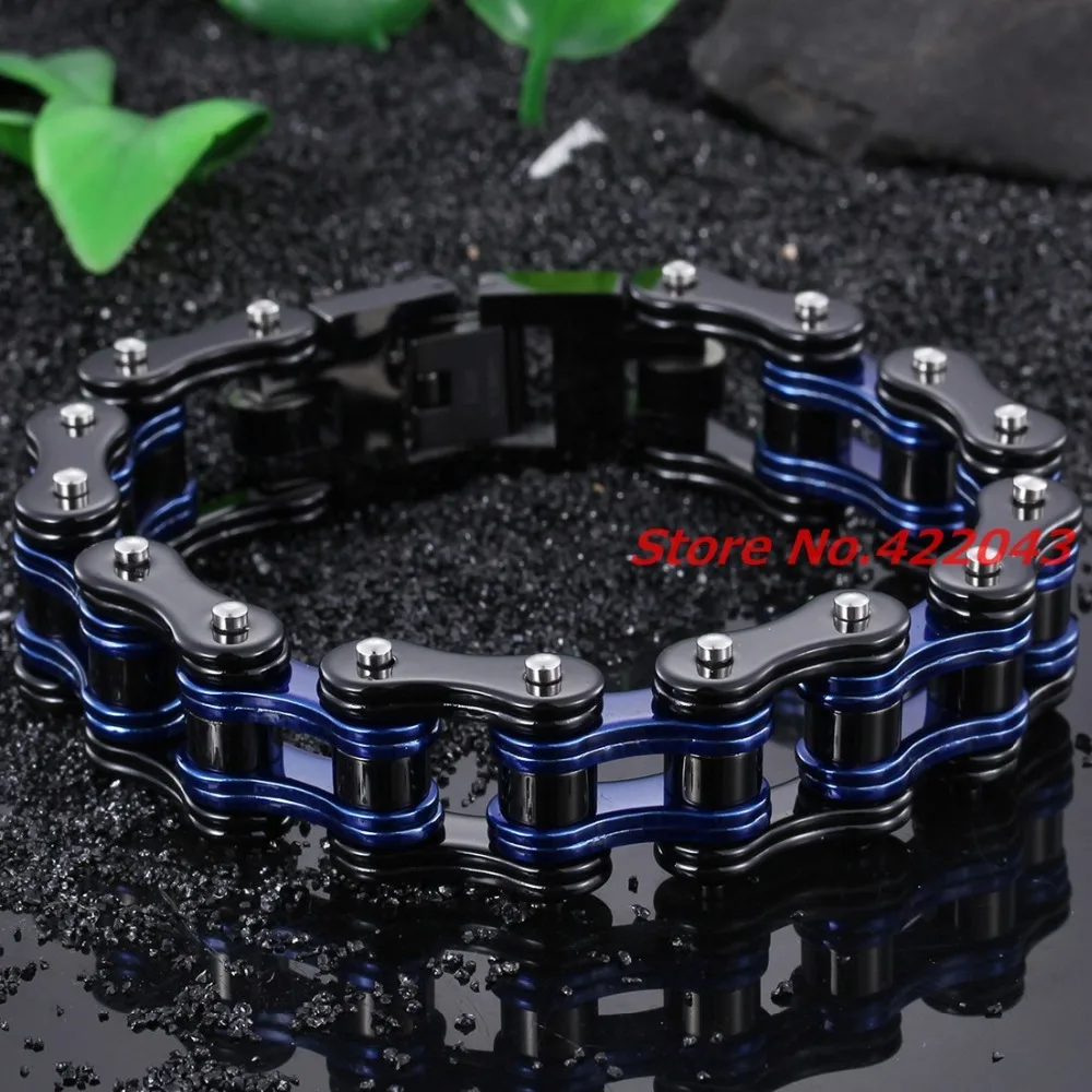 Fashion Charm Mens Bracelets Men Jewelry Black Blue Stainless Steel Motorcycle Bicycle Chain Link M