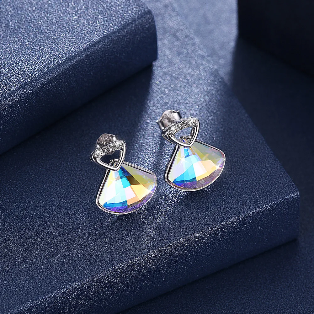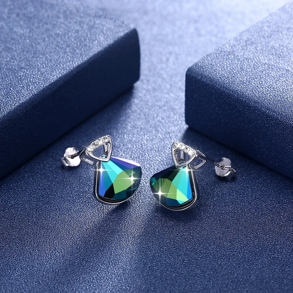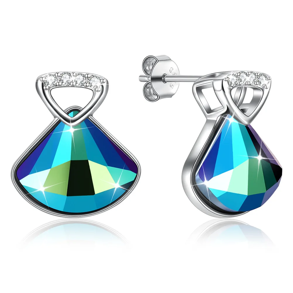 925 sterling silver jewelry cute blue Austria crystal stonel earrings stud for women fashion 925 pu